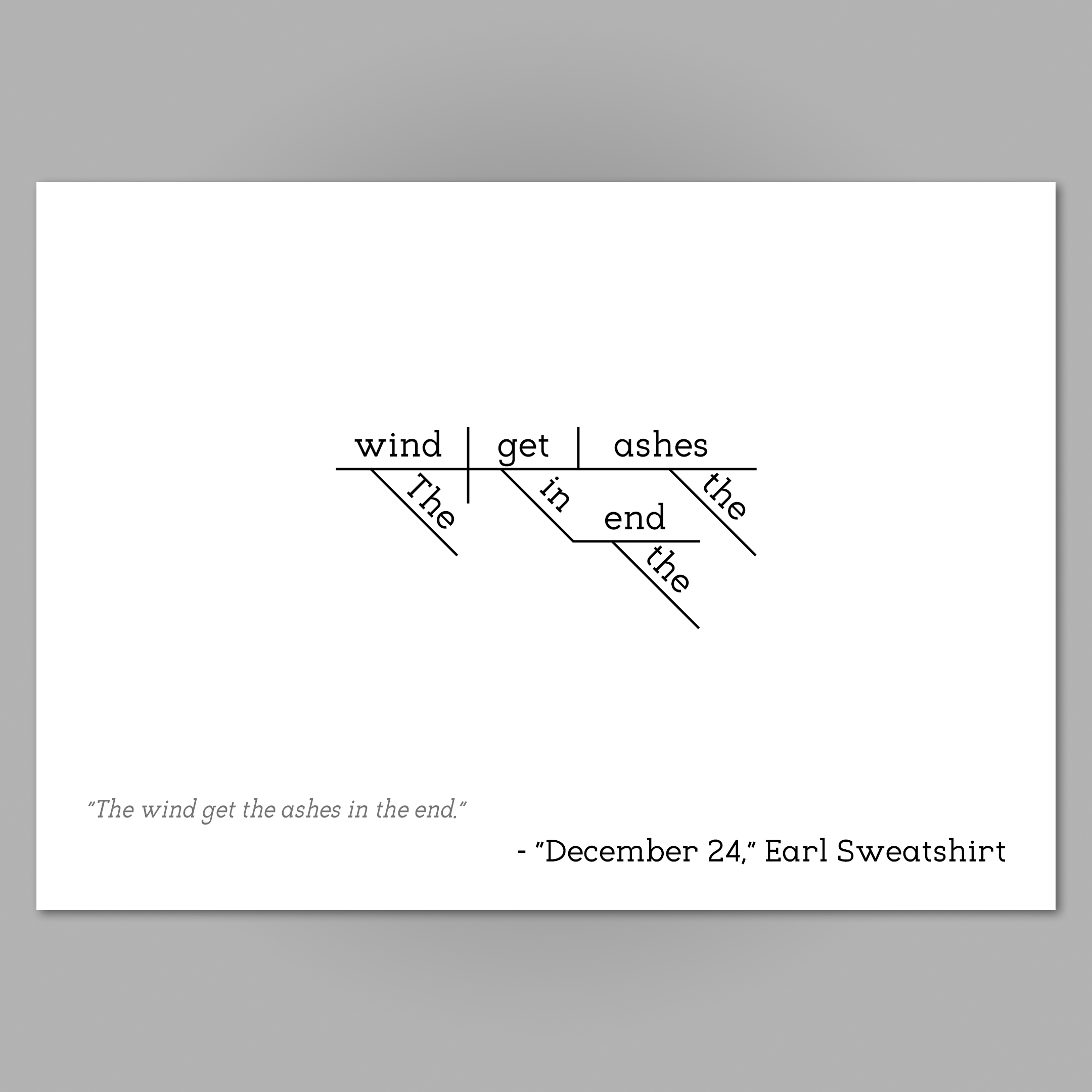 Part of the Sentence Diagram Collection, in which famous quotes from pop culture are filtered through the Reed-Kellogg system of sentence diagramming to create minimalist word art that bring character to any available wall space.