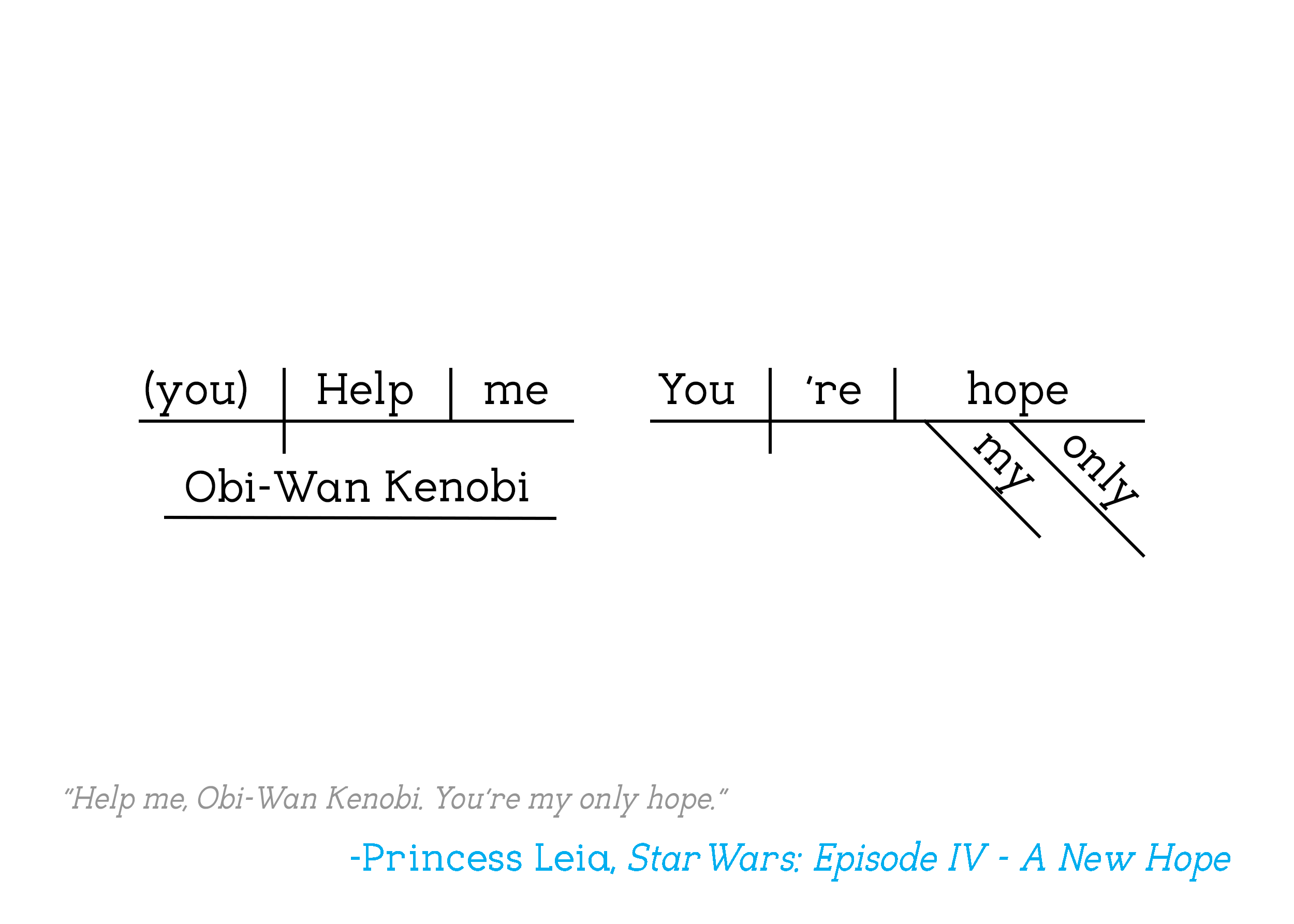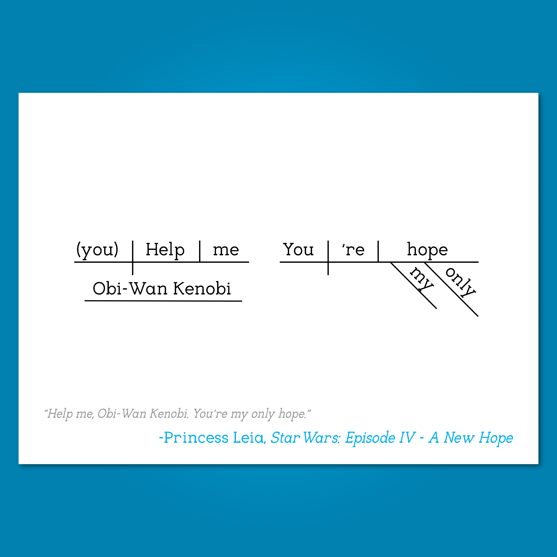 Part of the Sentence Diagram – Star Wars Collection, in which famous quotes from Star Wars are filtered through the Reed-Kellogg system of sentence diagramming to create minimalist word art that bring character to any available wall space.